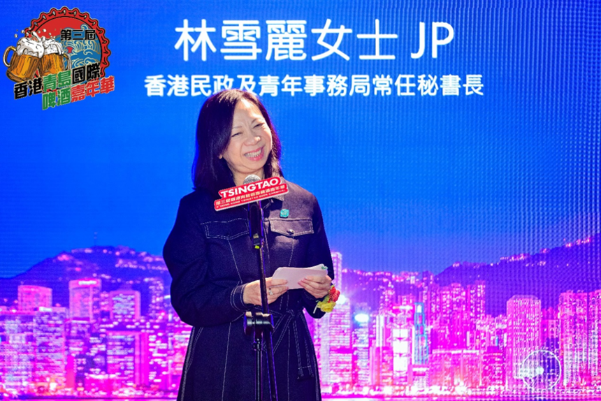 「第三屆香港青島國際啤酒嘉年華」盛大啟幕青島啤酒香港貿易有限公司、香港山東社團總會、香港青島同鄉聯誼會聯合主辦的「第三屆香港青島國際啤酒嘉年華」,於11月5日晚在香港嘉里酒店百味村正式開幕。 在香港特區政府與青島市委市政府的大力支持下,這場連續三年舉辦的跨城盛事吸引300餘位港魯兩地各界人士齊聚,以酒為媒凝聚同心力量,共話合作情誼。 活動現場的重磅亮點當屬青島啤酒新品「超干啤酒」全球首發,嘉賓們共同開啟啤酒罐,見證這款全新健康飲品的誕生。 隨著主禮嘉賓在倒計時中將啤酒注滿啟動裝置,本屆嘉年華正式啟幕,全場舉杯共慶這場激情與歡樂的盛會。 香港民政及青年事務局常任秘書長林雪麗女士, JP為大會致歡迎辭,她盛讚青島啤酒不單是山東的代表品牌,也是譽滿國際的中國名片。她對香港山東社團總會長期以來為促進魯港兩地合作交流所做的貢獻表示了由衷的感謝,並在此呼籲大家踴躍參與12月7日的立法會換屆選舉和即將盛大開幕的大灣區全運會。 香港中華聯誼會會長鄭翔玲女士在致辭中表示,青島啤酒的品牌是講好中國故事、傳播中華文化的生動載體,在二十屆四中全會的勝利號角聲中,中國企業必將繼續推動新質生產力高質量發展。她期待每年都能有此佳節如約而至,並祝願「啤酒節精神」能夠積極影響在場每一個人。 香港山東社團總會會長朱新勝對全場撥冗出席開幕式的嘉賓表示了熱烈歡迎,對各主辦方、合作夥伴及工作人員的協力付出表示了衷心感謝,並呼籲大家積極參與選舉投票,共同維護香港目前由治及興的新局面,開創繁榮穩定的新明天。 出席開幕典禮的主禮嘉賓包括:青島市委副書記、青島海外聯誼會會長張惠,香港民政及青年事務局常任秘書長林雪麗,中央政府駐港聯絡辦行政財務部副部長李旭鴻,香港中華聯誼會會長鄭翔玲,外交部駐港公署參贊包海斌,港區省政協委員聯誼會主席蘇清棟,香港山東社團總會會長朱新勝,中國和平統一促進會香港總會常務副會長吳輝體,香港青島同鄉聯誼會會長董瑞婷,青島啤酒國際公司董事長馬寧,香港立法會議員陸瀚民等。